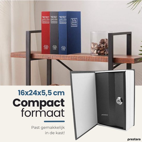 De Prestara boek kluis combineert functionaliteit en veiligheid met een stijlvol en onopvallend ontwerp. Of je nu jouw waardevolle eigendommen thuis, op kantoor of onderweg wilt beveiligen, deze verborgen kluis biedt de perfecte oplossing. Met zijn hoogwaardige constructie en gebruiksgemak beschermt dit kluisje jouw eigendommen maximaal tegen ongewenste toegang.