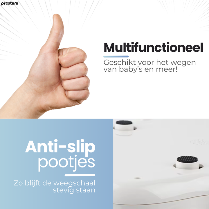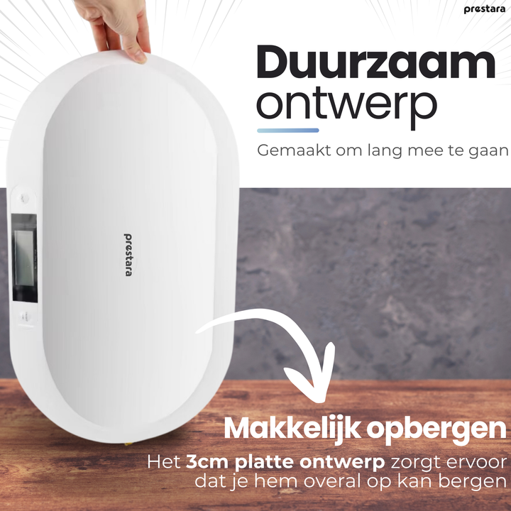 Veelzijdig Bruikbaar: Ideaal voor gebruik als babyweegschaal of voor het wegen van huisdieren, voorzien van een praktische vergrendelingsfunctie.